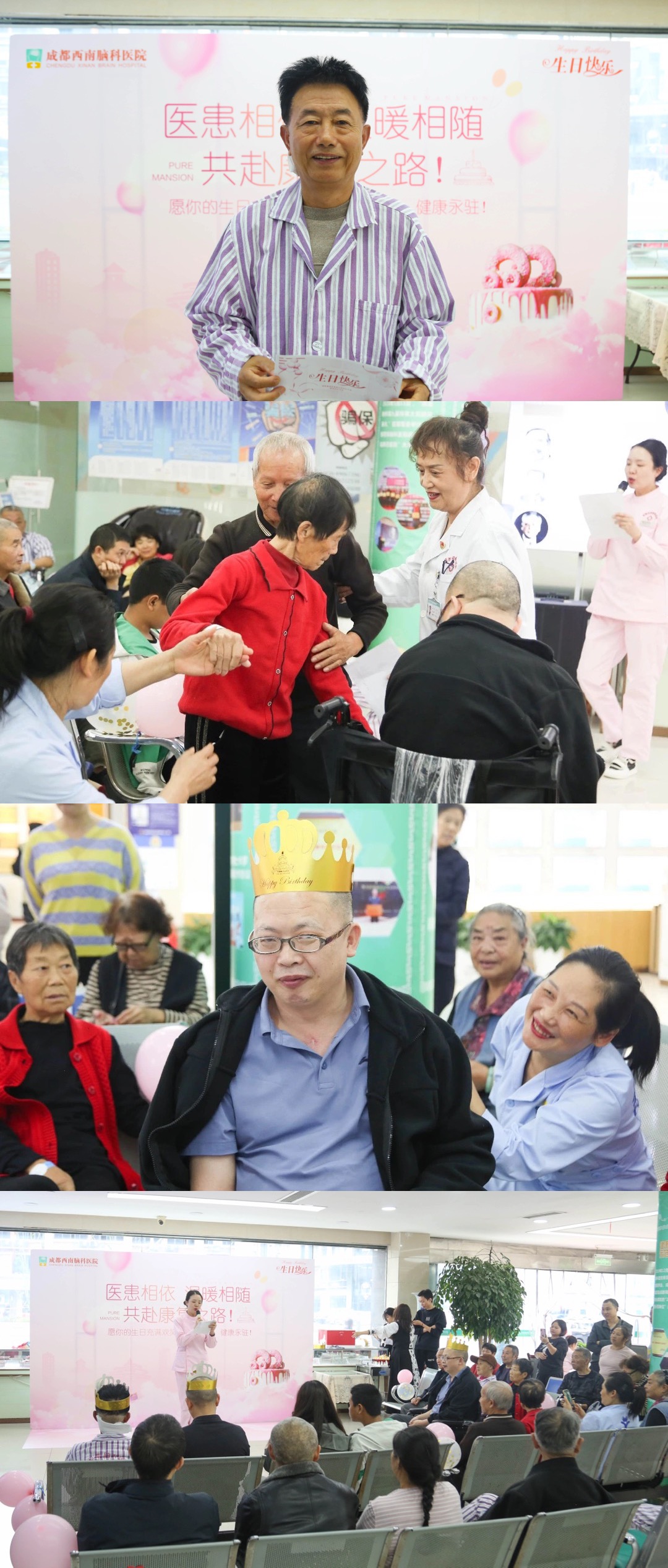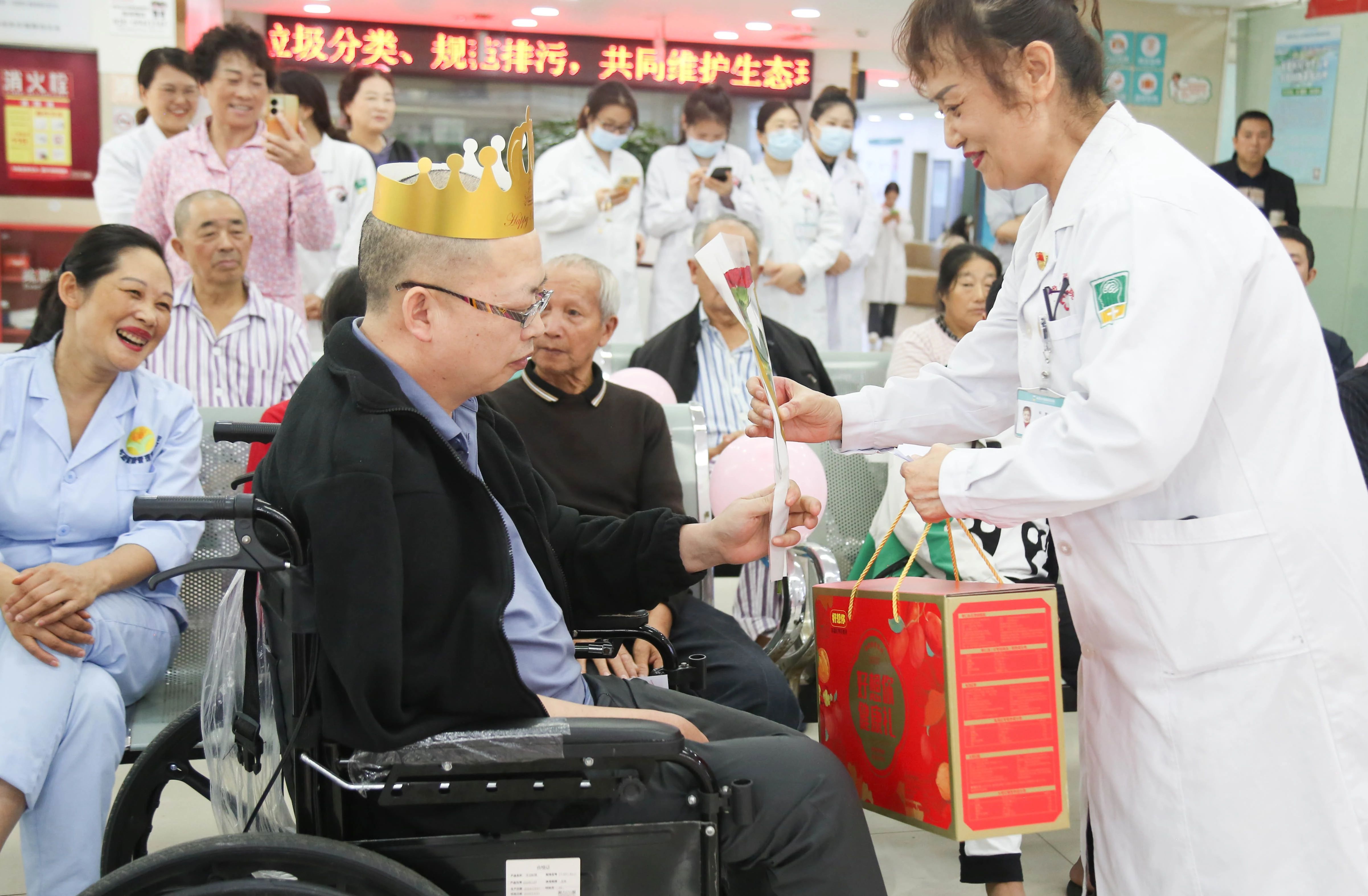 下午3点50,生日会在欢快的音乐中正式开启。党支部王桂芝书记代表院方,向本月过生日的住院患者送上了真挚的慰问和生日祝福。愿他们病魔远离,健康常伴!