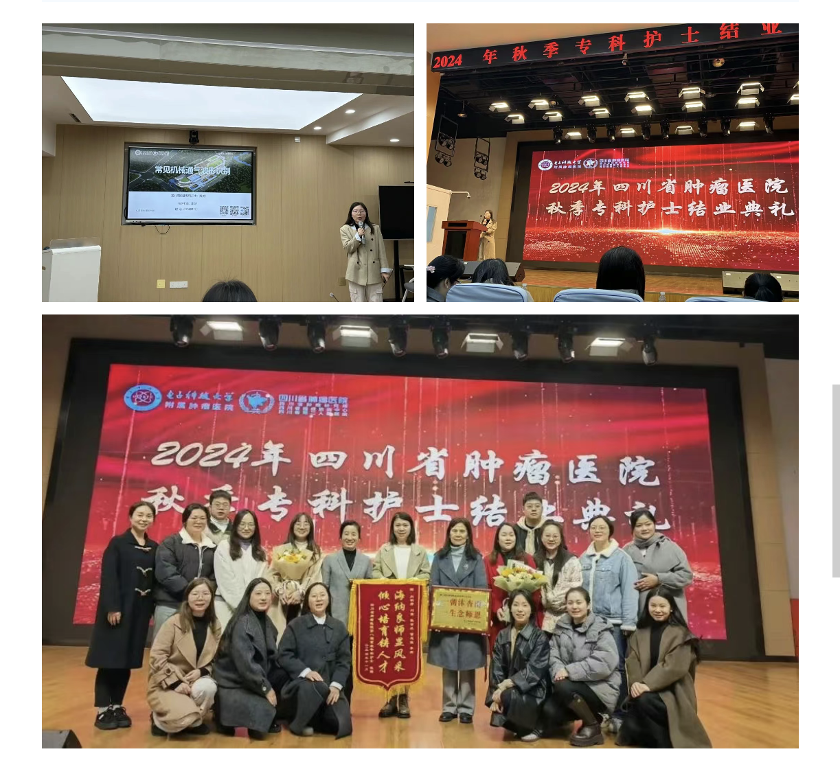 为此,9月2日~12月2日,监护室护士长魏婷前往四川省肿瘤医院,参加了重症护理专科护士培训,荣获“优秀学员”及“小讲课二等奖”。