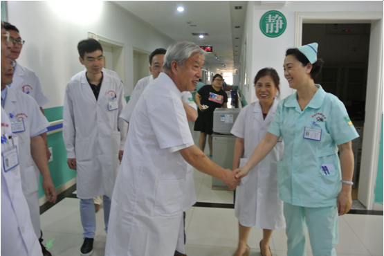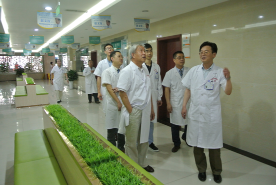 (赵文汝教授在我院张波院长及医生的陪同下参观我院)