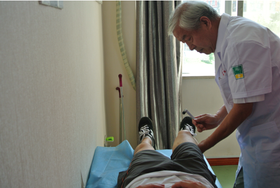 赵教授对官彬的左手腕下垂的关节进行多方面检查,现场对官彬采取了基础的神经训导康复训练,并给院内康复医师进行了详细的分析讲解,引导官彬进行主动运动康复,并对官彬的以后日常康复训练提出了细致且有效的建议。