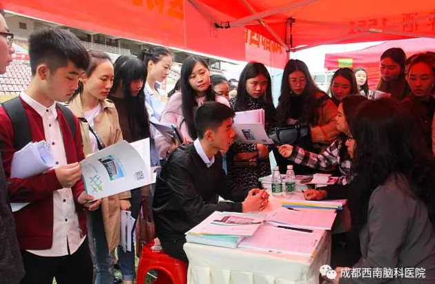 成都西南脑科医院作为西南地区的脑科医院,也参加了这次的“双选会”。主要招聘的三个职位:管床医生,护士和药剂师受到了应届毕业生的青睐,咨询应聘的人络绎不绝。