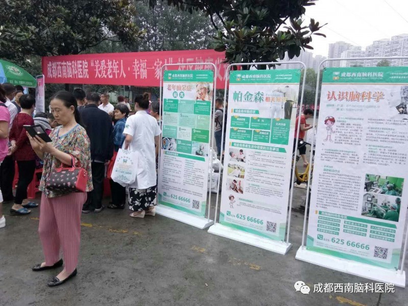 今天成都西南脑科医院的医生和护士们来到了成都市成龙街道老协活动现场,展开了主题为“关爱老年人 幸福一家人”的义诊活动。主要目的是为社区的老人们进行了老年病的知识普及和义诊,为大家传播老年痴呆、帕金森、脑萎缩等老年病的相关知识。