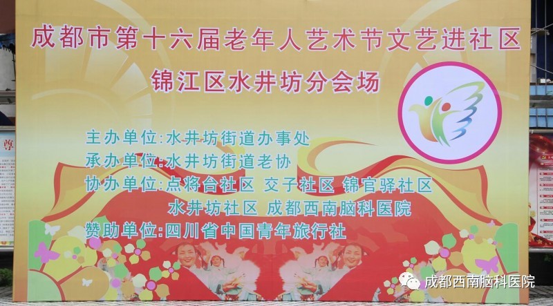 由成都市水井坊街道办事处主办,水井坊老协承办,点将台社区、交子社区、锦官驿社区、水井坊社区联合成都西南脑科医院举办的成都市第十六届老年人艺术节文化进社区活动在昨天完美落幕。成都西南脑科医院的医生护士们也到场展开了公益义诊活动。
