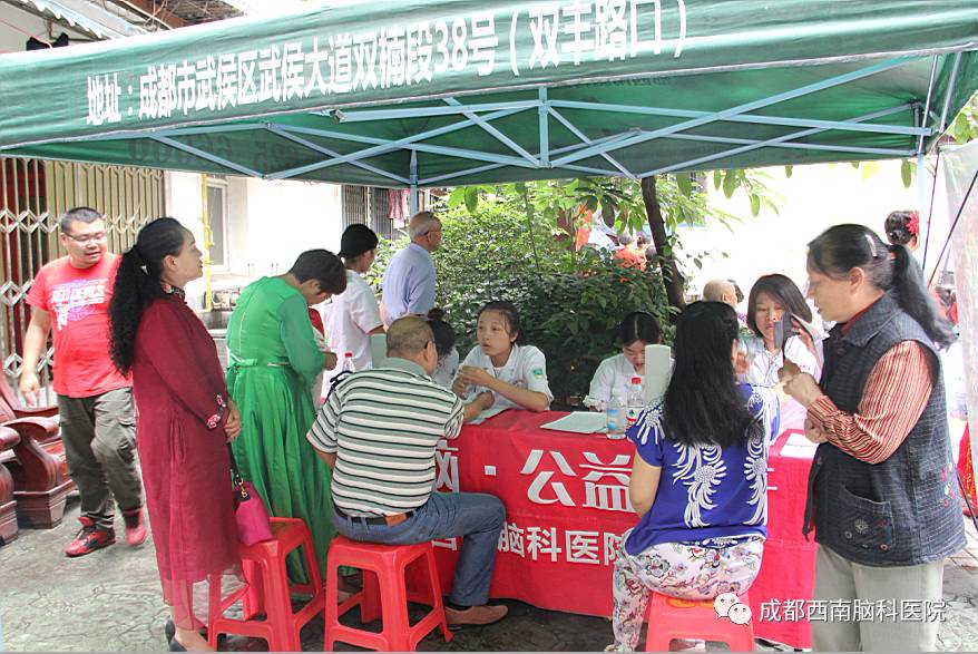 这次活动中,成都西南脑科医院全体医护人员认真细致的服务态度,赢得了大家高度的评价,也为社区群众带来了健康资讯和夏日的温暖。除了今天的水井坊街道,目前成都西南脑科医院已经去过成都市成龙街道、府南街道、抚琴街道、金沙街道等多个社区进行了义诊活动,据悉,类似的活动还会在成都各大社区相继开展,希望大家多多关注,说不定哪天你就能在家门口享受免费身体检查的福利呢?如果您有什么关于脑科疾病的疑问也可以电话或者在线留言咨询我们。