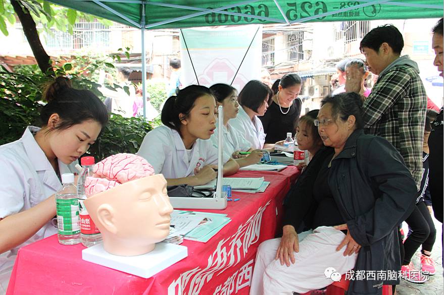成都西南脑科医院已经先后去到多个社区进行了公益义诊活动,这次水井坊社区义诊主要目的是为社区的老人们进行了老年病的知识普及和义诊,为大家传播老年痴呆、帕金森、脑萎缩等老年病的相关知识。让更多的老年人加强脑部疾病的预防知识,意识到这种疾病的严重性。