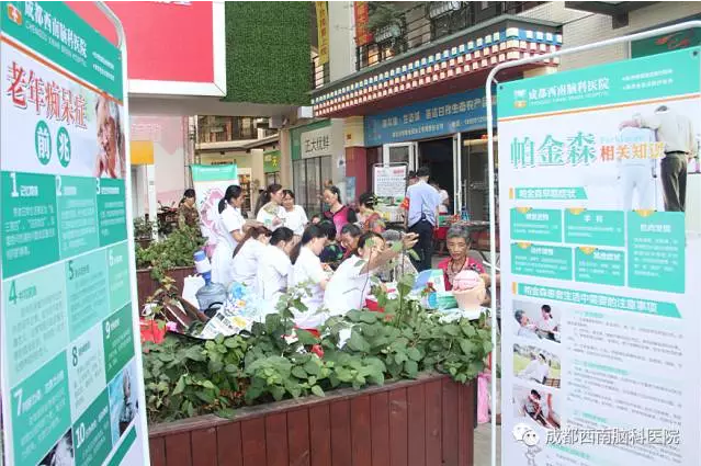 成都西南脑科医院的医护人员已经先后去到多个社区进行了公益义诊活动,这次义诊主要目的是在“文化进社区”同时,为社区的老人们进行了老年病的知识普及和义诊,提高他们的健康意识,为大家传播老年痴呆、帕金森、脑萎缩等老年病的相关知识。让更多的老年人加强脑部疾病的预防知识,意识到这种疾病的严重性。