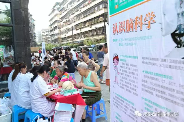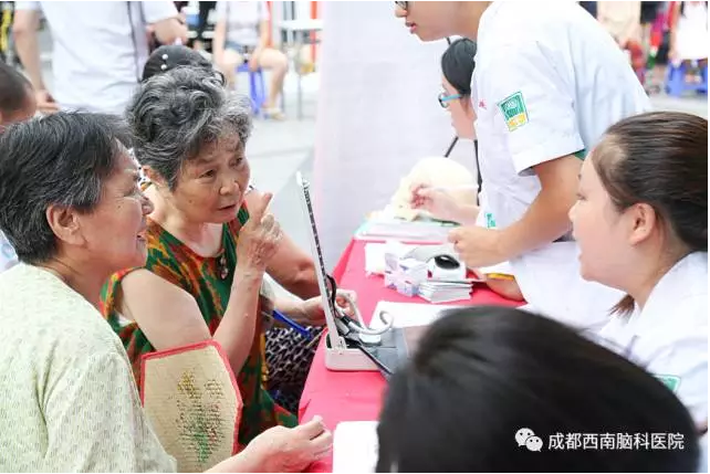 成都西南脑科医院的医护人员已经先后去到多个社区进行了公益义诊活动,这次义诊主要目的是在“文化进社区”同时,为社区的老人们进行了老年病的知识普及和义诊,提高他们的健康意识,为大家传播老年痴呆、帕金森、脑萎缩等老年病的相关知识。让更多的老年人加强脑部疾病的预防知识,意识到这种疾病的严重性。