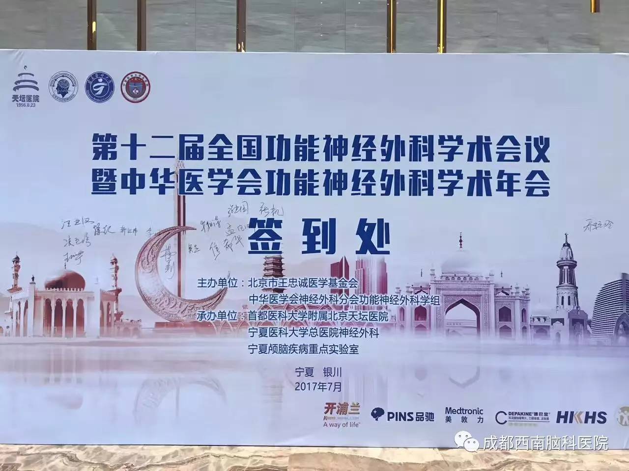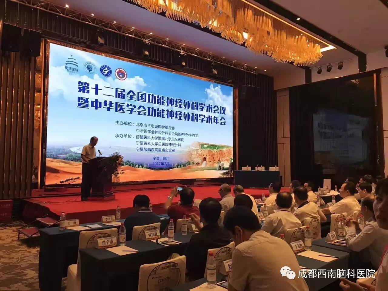 第十二届全国功能神经外科学术会议暨中华医学会功能神经外科年会于7月30日(昨天)在宁夏银川圆满落幕。本次大会由中华医学会神经外科学分会功能神经外科学组、王忠诚医学基金会主办,宁夏医科大学总医院神经外科、宁夏颅脑疾病重点实验室承办。成都西南脑科医院特需医生,解放军(北京)海军总医院神经外科尹丰教授也在本次邀请嘉宾的名单中。