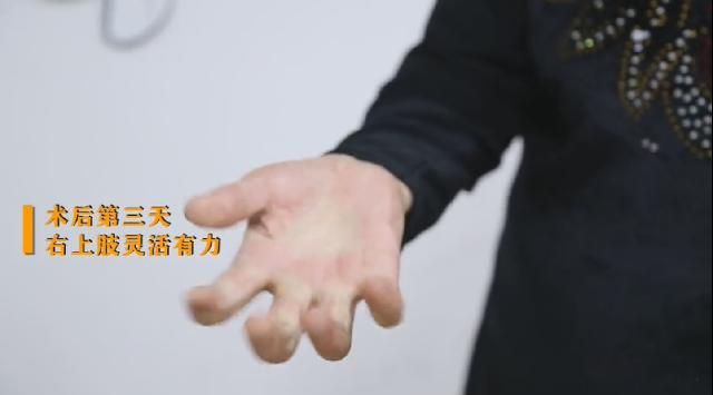 7月8日上午做的手术。大概30多分钟她就出手术室了。出来的时候,右边手脚已经不抖了。第二天,她可以下床活动,右手比以前灵活,可以拿稳东西。她的脚以前是僵的,还会抽筋、痛,半夜我都起来给她搓脚,现在基本上可以睡到天亮。手脚不抖不僵,她走路、做事轻松,我也轻松。
