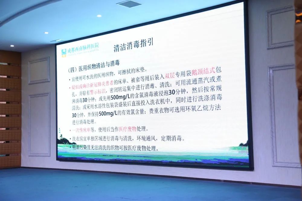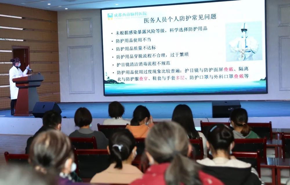 结合“病区7个24小时管理”的目标要求,王主任从预检分诊的科学设置到发热患者的闭环管理、从医务人员的分级防护到环境的清洁消毒、从住院患者的严格管理到医疗废物的规范收集等相关内容进行了精彩的讲授。