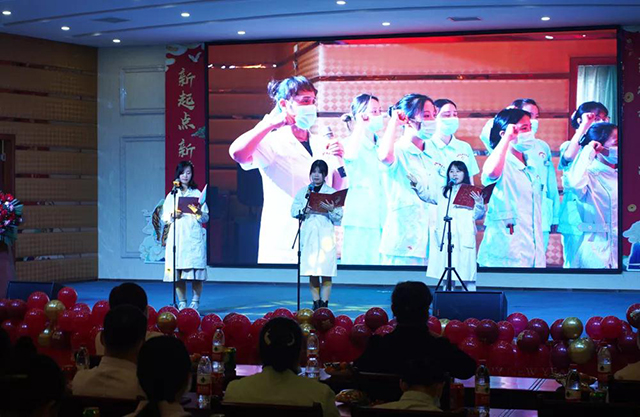昨日(1月14日),我院召开了2021年度表彰大会暨年会盛典,全院领导、管理人员和医护人员代表等40多人参加会议。