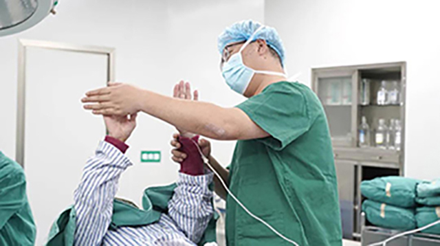 手术过程中,张涵博士对着程先生说:“来,试一试抓住我的手”,程先生原本颤抖的双手在这一刻非常稳的抓住了张涵博士的手。