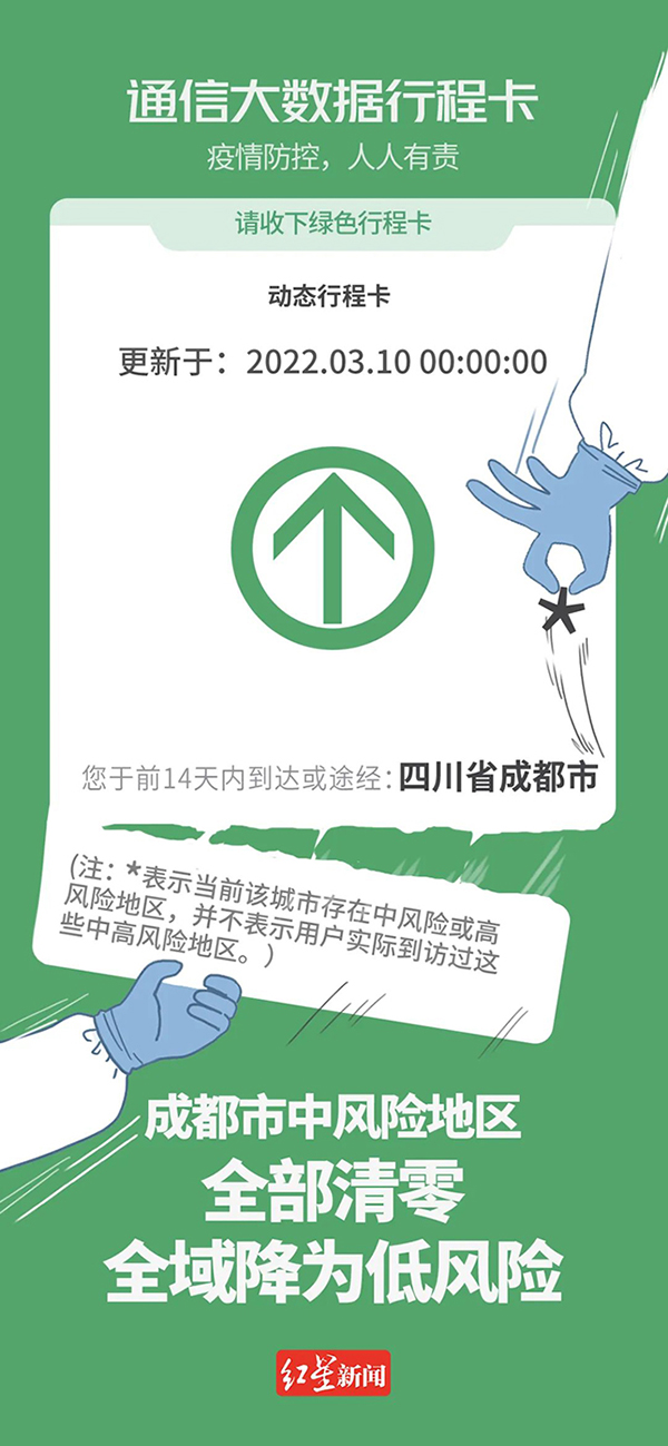 较后再次提醒市民朋友:我市全域为低风险后,大家可正常出行,离蓉无需核酸检测报告,但请提前了解目的地疫情防控政策,遵守相关要求。
