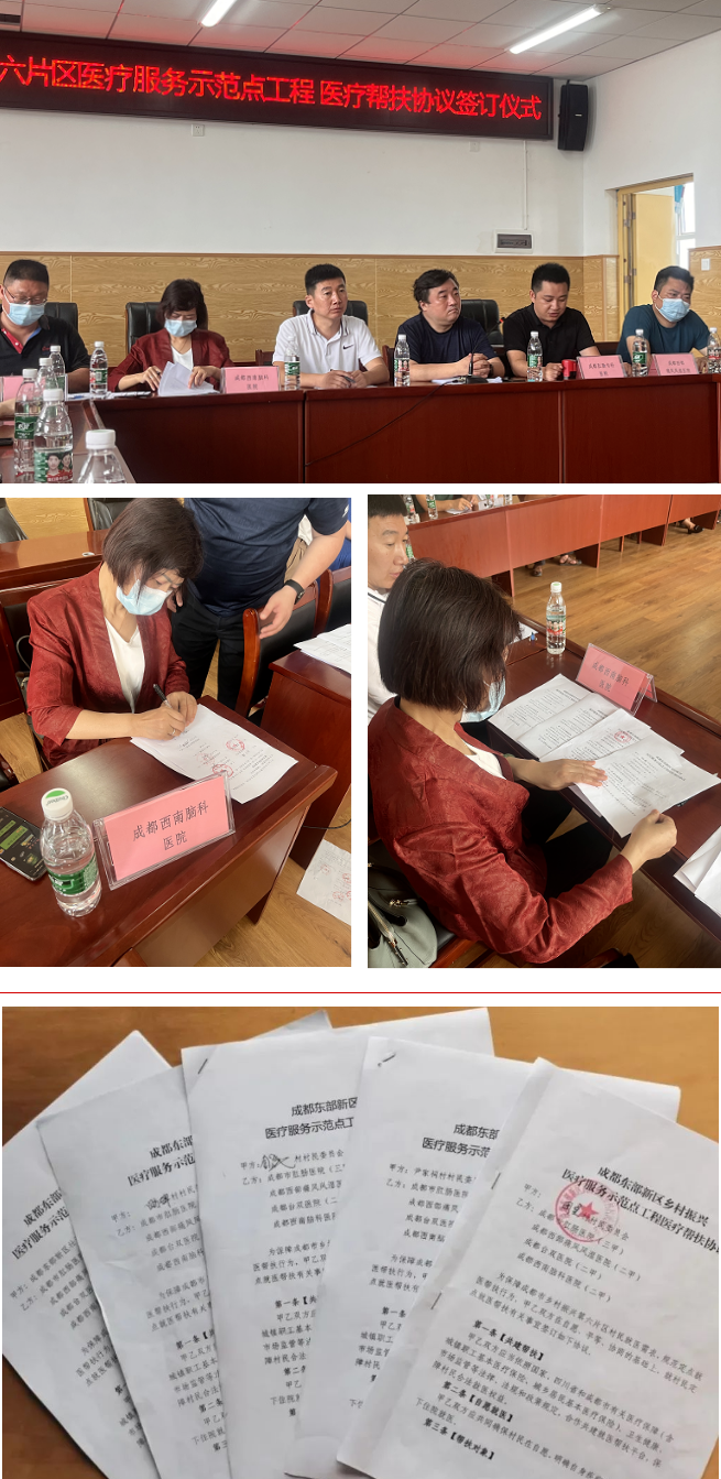 昨日(6月23日)上午9点半,【成都东部新区乡村振兴医疗服务示范点工程第六片区签约仪式】在东部新区周家学校举行,我院作为四家帮扶医院之一,与东部新区6个村的村代表、村书记共同签订了帮扶协议。