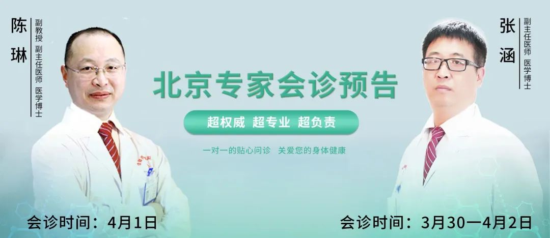 张涵博士的会诊时间为3月30~4月2日四天,陈琳博士的会诊时间仅4月1日一天,请大家合理的安排预约时间。