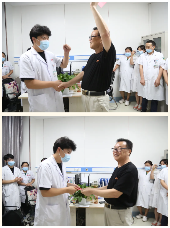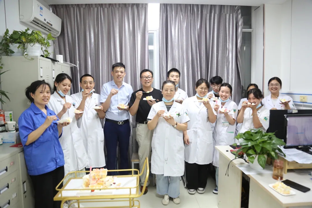 吴主任紧随其后,将手中的贺卡递给了另一位寿星。这一刻,科室的每一个角落都洋溢着家的温暖,每一份祝福都化作了前行的动力。
