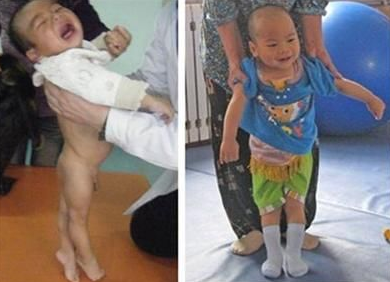 三、由挛缩引起。患儿在用力或运动时出现剪刀步、足下垂是由不正常用力所致,在练习中用手法一般能矫治。患儿在放松或运动状态下出现剪刀步、足下垂,而被动运动时这种症状就会消失,这是原始反射没有消失引起。在放松情况下仍有明显的剪刀步、足下垂,被动活动也不能缓解者,是由肌肉挛缩引起。