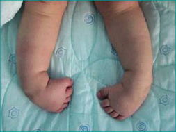 1、出生后即出现单侧或双侧足部程度不等之畸形,足部呈踝关节跖屈位,内翻、内收畸形。