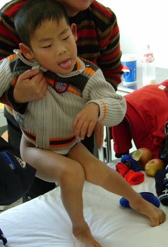 8、运动障碍:脑发育不全患儿程度轻的只是手、脚动作稍显得不灵活或笨拙,严重的则双手不会抓东西,双脚不会行走,有的甚至不会翻身,不会坐起,不会站立,不会正常的咀嚼和吞咽。