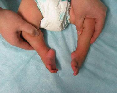 马蹄内翻足变形主要的病理改变为足踝关节和距下关节呈跖屈变形,后足内翻,中足和前足呈内收、内翻和跖屈位。在严峻马蹄内翻足,变形的产生与骨构造和软组织构造的异常都有联系。