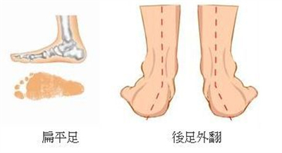 足外翻又叫外翻仰伸足,是指儿童足跟轴向外偏斜,是足部常见畸形之一。足外翻是因为脚部肌腱发育异常导致的一种畸形,同时伴有扁平足和舟骨塌陷,小腿中点、跟腱中心、跟骨中心三点连线呈型。另外,足外翻还会引发踝关节外翻变形。